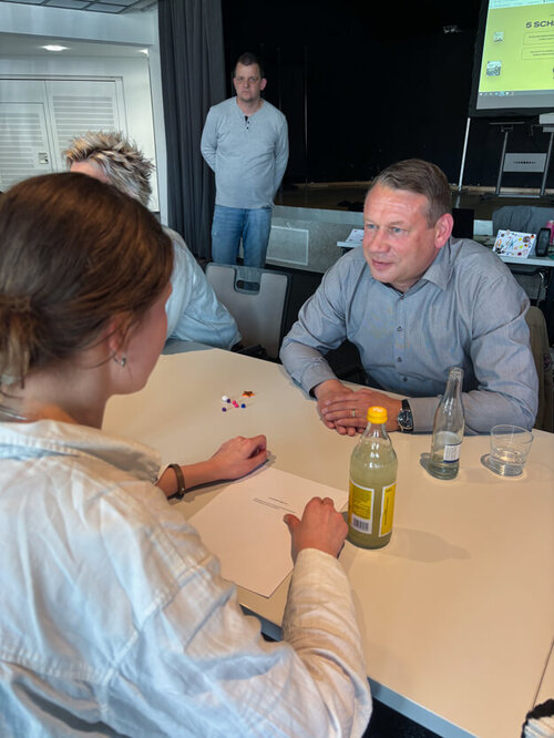 Schnell ging der Vormittag damit zu Ende und wir erhielten im Ausbildungscafe ein hervorragendes Mittagessen. Der Nachmittag stand unter dem besonderen Blick auf die Führungskräfte des BBW und der NBS und ihren verschiedensten, verantwortungsvollen Arbeitsbereichen. Zudem war den Mentor:innen wichtig, den jungen Menschen die Führungskräfte auch als persönliche Individuen näher zu bringen. Menschen, die in den Unternehmen eine Rolle innehaben und neben dem Job durchaus „menschlicher“ sind als der berufliche Alltag vermuten lässt.