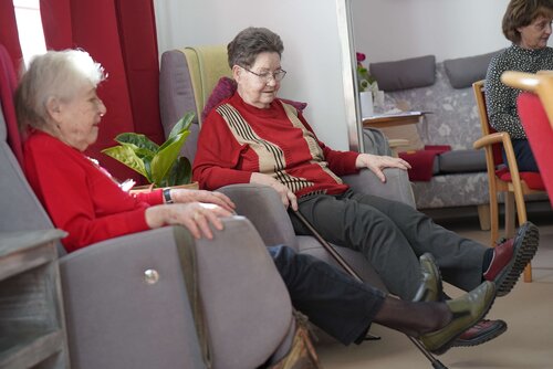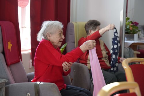 Nach dem Frühstück steht heute Sport auf dem Plan. Dabei geht es primär darum, die Beweglichkeit der Gelenke zu trainieren und der mit dem Alter abnehmenden feinmotorischen Geschicklichkeit entgegenzuwirken. Die Gäste beteiligen sich nach ihren individuellen Möglichkeiten an dem Angebot, erfahren dabei Motivation durch Pflege- und Betreuungskräfte. Denn für ältere Menschen können bestimmte Bewegungsabläufe herausfordernd sein. Gleichwohl ist es wichtig sie zu trainieren, um beispielsweise Stürzen entgegenzuwirken.