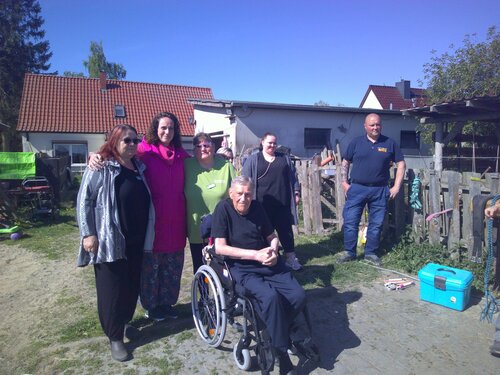 Seit diesem Tag verbesserte sich der Gesundheitszustand von Herrn Klaut zunehmend. Sein Lebenswille kehrte zurück und damit nicht nur der Wunsch, sondern auch der Ehrgeiz wieder selbstständig am gesellschaftlichen Leben teilzunehmen. Mit Hilfe der Physiotherapie Lichtblau, regelmäßigem Training und einem starken Willen kann er mittlerweile wieder Treppen steigen. Der elektrische Rollstuhl gibt ihm darüber hinaus die Freiheit, sich ohne fremde Hilfe auch außerhalb des Nikolaiheims zu bewegen. Sofern das Wetter es zulässt, ist Herr Klaut nahezu täglich draußen, am Kosenowsee, auf dem Sportplatz, wenn mal wieder ein Fußballspiel ansteht, beim Bäcker oder einfach in der näheren Umgebung, die Natur genießend. Besonders schätzt er an dieser Freiheit, dass er mit Menschen in Kontakt kommt und hier und da ein Pläuschchen halten kann.