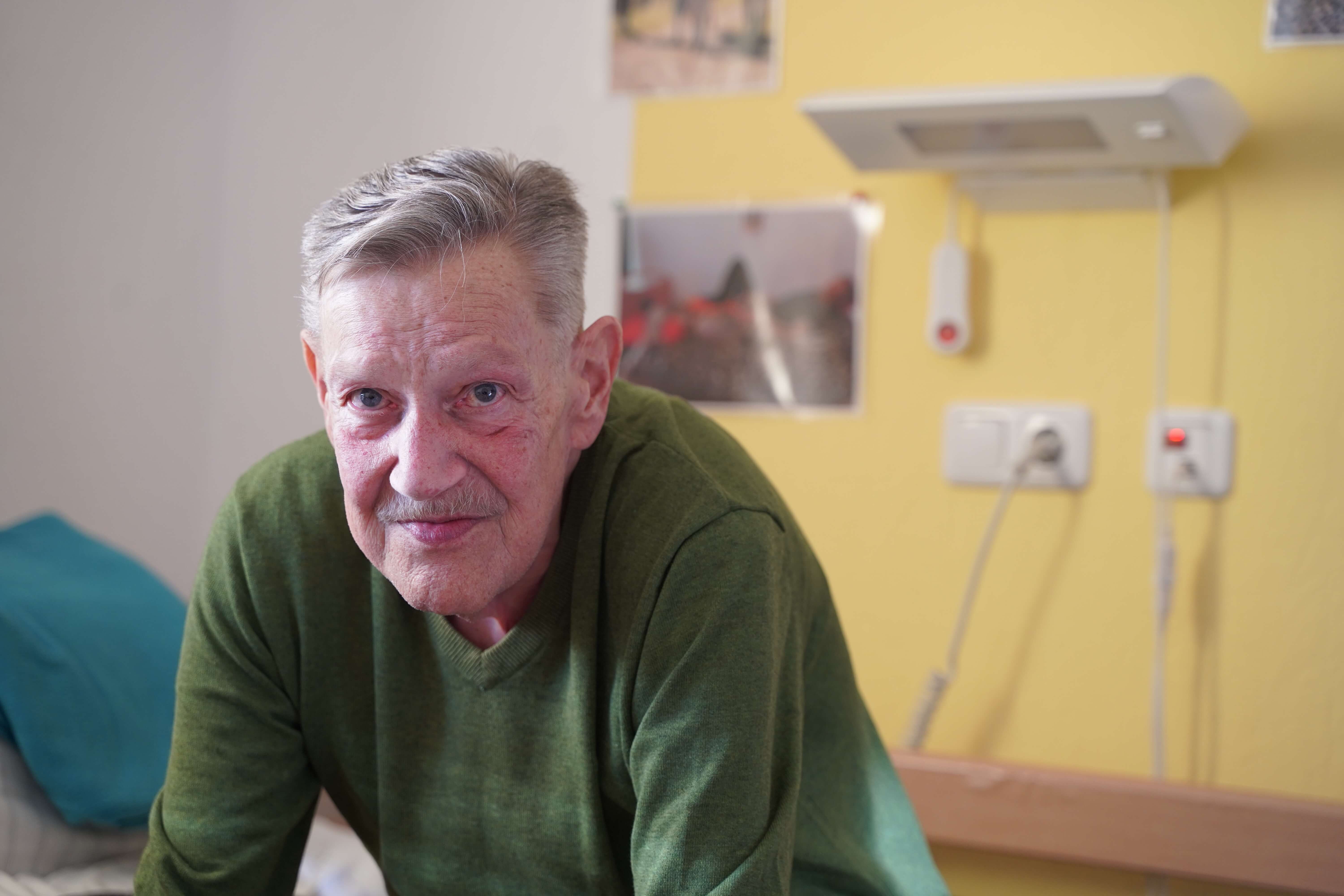 Das Nikolaiheim ist für Herrn Klaut zu einem zu Hause geworden, denn hier ist er auf Menschen gestoßen, die für ihn da sind, die sich um ihn sorgen und ihm einfach mit viel Empathie und Herz zur Seite stehen, so wie Schwester Laura und Carola vom ambulanten Hospizdienst. „Es ist ein gutes Gefühl, nicht allein zu sein. Dadurch fällt es mir auch nicht schwer lustig zu sein.“ Erzählt mir Herr Klaut mit einem Lachen und fügt hinzu, dass er im Nikolaiheim seine Lebensfreude wieder gefunden hat. Ihm ist dabei durchaus bewusst, dass seine Lebenserwartung aufgrund der Erkrankung begrenzt ist. „Aber den 88. Geburtstag kann man ja im Auge behalten.“ fügt er lachend hinzu. Herrn Klaut ist es wichtig, so lange wie möglich, die eigene Selbstständigkeit aufrechtzuerhalten. Dabei schätzt er sehr, wie gut das Personal im Nikolaiheim für ihn sorgt. Nicht nur, dass die Speisenversorgung aufgrund seines Gewichtsverlustes angepasst wurde, sondern dass man auch auf zwischenmenschlicher Ebene für ihn da ist. So erzählt Herr Klaut, dass sich die Mitarbeitenden im Heim nicht nur aus Höflichkeit zu ihm setzen und mit ihm schnacken, sondern, dass sie das wirklich gerne machen.
