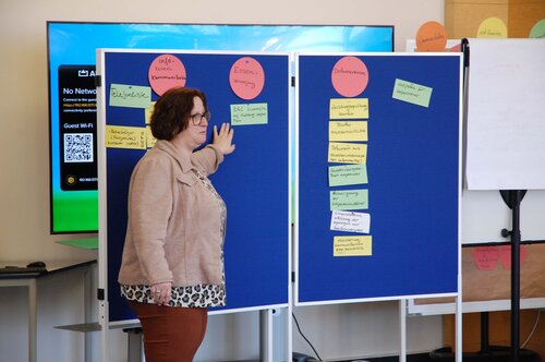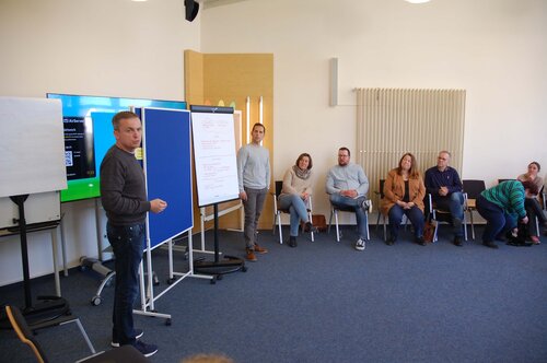 Der Tag begann mit Kreativität – Herstellen eines Namensschildes, welches persönliche Merkmale hervorbringen sollte - um sich danach mit dem Schild den anderen vorzustellen. Weiter ging es mit organisatorischen Inhalten wie Bachelorthesis, perspektivische Prüfungsvorbereitungen, um die jungen Menschen in dieser aufregenden und herausfordernden Zeit noch besser begleiten zu können. Außerdem fand eine Ideensammlung für die Gestaltung eines Willkommenstages für neue Student:innen statt.