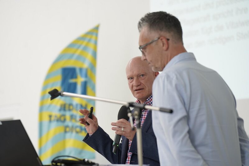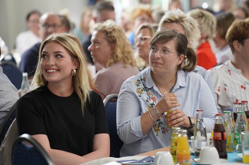Beim 1. Mitarbeitenden-Forum der UGPD am Kosenowsee in Gützkow gaben der Vorstand und die Vertreter*innen der Geschäftsbereiche spannende Einblicke in die Entwicklung unserer Unternehmensgruppe und nahmen die ca. 260 Teilnehmenden mit in die vielfältigen Lebens- und Arbeitsbereiche der UGPD. Die Beiträge waren geprägt von einem hohen Maß an Transparenz, auch gegenüber kritischen Themen, Authentizität und der Vermittlung von interessanten Informationen.