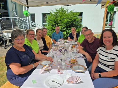 Seit nunmehr drei Jahrzehnten hat sich mit dem Gertraudenstift ein stationäres Pflegeangebot des Pommerschen Diakonievereins in Demmin etabliert. Ein Haus mit Geschichte und vielen Traditionen. So lud man auch in diesem Jahr wieder zum jährlich stattfindenden Sommerfest ein. Beim Besuch der Feierlichkeiten wurde deutlich, wie gut die Einrichtung in der Stadt und Umgebung vernetzt ist. So nahmen nicht nur die Mitarbeitenden der Sozialstation Gertraudenpflege und der Tagespflege teil, sondern auch Kooperationspartner der Löwen-Apotheke, der Johanniter-Kita „Kleine Füße von St. Bartholomaei“, des Pflegestützpunkts Demmin, des Hospizes sowie der stellvertretende Bürgermeister der Stadt und die Evangelische Gemeindepastorin Uta Voll.