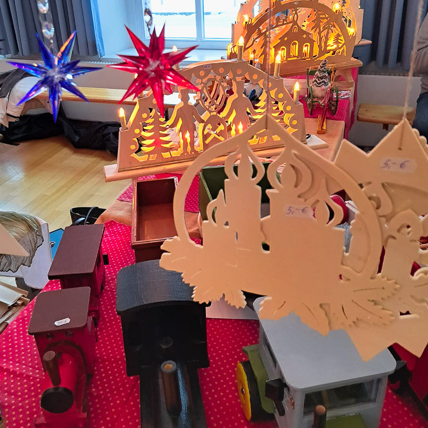 Gemeinsam mit der Züssower Ortsgruppe der Volkssolidarität, engagierten Bürgerinnen und Bürger aus Züssow und der Region, sogar einem Fan unseres Marktes aus Berlin und Kolleginnen und Kollegen der Greifenwerkstatt, haben wir, natürlich nicht nur für Züssow, wieder das vorweihnachtliche Highlight „Adventsmarkt“ auf die Beine gestellt. Am 2. Dezember fand der Markt statt und trotz des vielen Schnees, der in den Tagen zuvor gefallen war, strömten viele Besucher und Besucherinnen zum Markt. Viele Stände mit glitzernden und funkelnden Kugeln und Weihnachtsbeleuchtungen, Kunsthandwerk, Kerzen und von Hand gefertigtem Spielzeug warteten hier und erfreuten sich großer Beliebtheit.