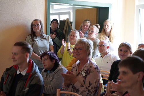 Das Martinstift war für die meisten Bewohner*innen viele Jahre ein Zuhause gewesen. Für die Kolleg*innen aus dem Team der tägliche Arbeitsort. Dass das bestehende Leistungsangebot im Martinstift, aufgrund der nicht mehr zeitgemäßen Raumstruktur, endlich ist, war klar. Doch nun, wo der Zeitpunkt für den Umzug in die neuen Räumlichkeiten gekommen ist, spürte man deutlich, wie diese bevorstehende Veränderung die Menschen aus dem Martinstift emotional berührt. Und so legten sie die mit dem Haus verbundenen Gefühle in eine ausdrucksstarke Darstellung des einstudierten Theaterstücks. Jede*r einzelne*r gab dem Stück eine ganz individuelle Note und erzählte auf emotionale Weise ihre*seine persönliche Verbindung mit dem Haus. Die Darsteller*innen verstanden es hiermit die anwesenden Gäste mitzunehmen und an ihrer Erzählung teilhaben zu lassen. Eine großartige Leistung aller Beteiligten.