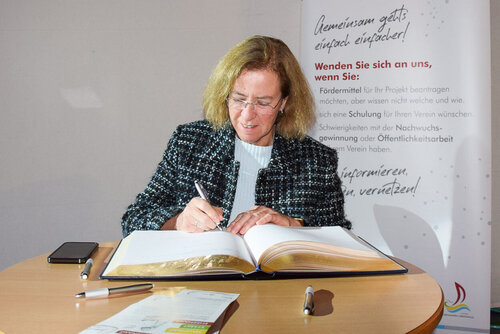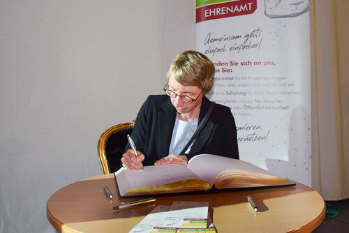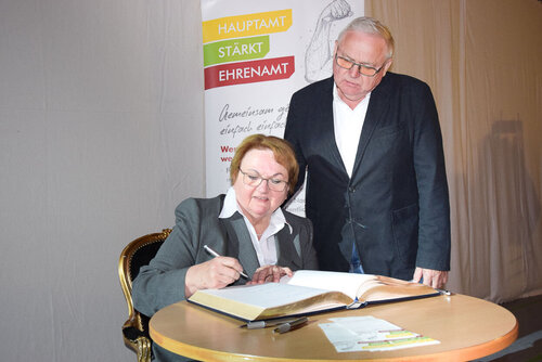 Alle Geehrten trugen sich am Abend in das Goldene Buch des Landkreises ein.