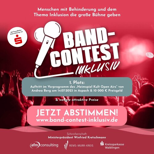 Der Gewinnerband winken ein Auftritt im Vorprogramm des 16. Heimspiel Kult Open Airs von Andrea Berg am 14. Juli 2023 in der Aspacher WIRmachenDRUCK Arena und zudem 10.000 Euro Preisgeld.