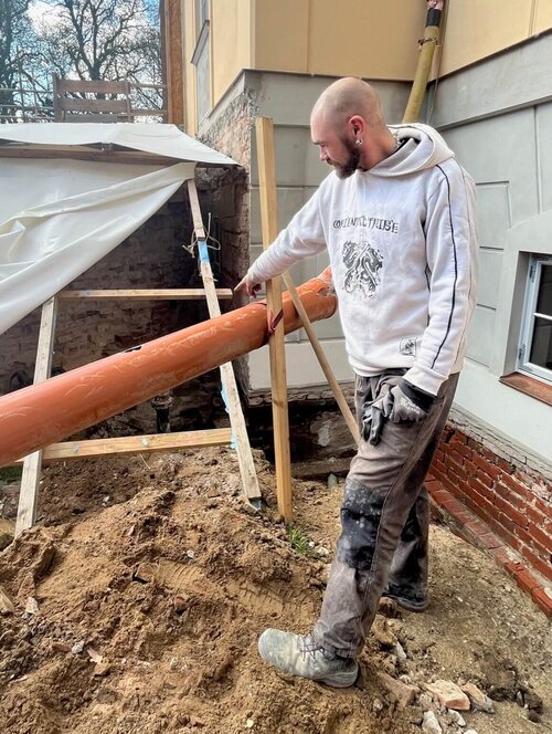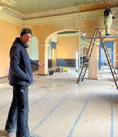 Stefan Eichbaum ist Zimmermann aus Levenhagen und maßgeblich verantwortlich für die Sanierung des Barockschlosses in Griebenow. Seit drei Jahren wird das Gebäude aufwändig saniert und seit Anfang 2020 arbeitete Tony Ladwig zufrieden und gut integriert im Team von Herrn Eichbaum.