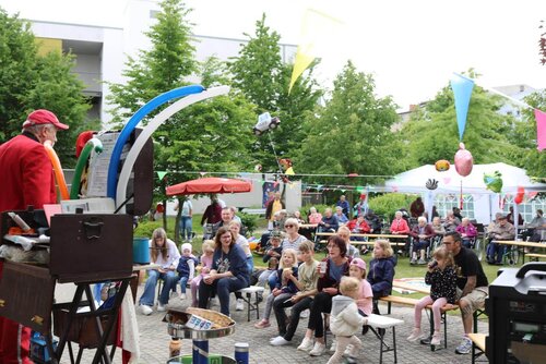 Nach gründlicher Vorplanung und Organisation fand am 05. Juni 2025 im Senioren- und Wohnzentrum am Botanischen Garten in Greifswald ein Kinderfest für alle Kinder und Enkelkinder unserer Mitarbeitenden am Standort statt. Neben einem bunten Programm mit Zauber-Show, verschiedenen Geschicklichkeitsspielen, Hüpfburg, Luftballonmodellage, Musik und Malstrecke, gab es auch allerlei Leckereien in Form eines Kuchenbuffets, frisch gegrillter Bratwurst, Süßigkeiten und Softeis. Da das Wetter sich – trotz Befürchtungen von auftretendem Regen und vormittags durchweg grauem Himmel – dann doch noch hielt, konnte im Innenhof zwischen Haus A und B ausgiebig gefeiert, gelacht, gespielt und geschlemmt werden.