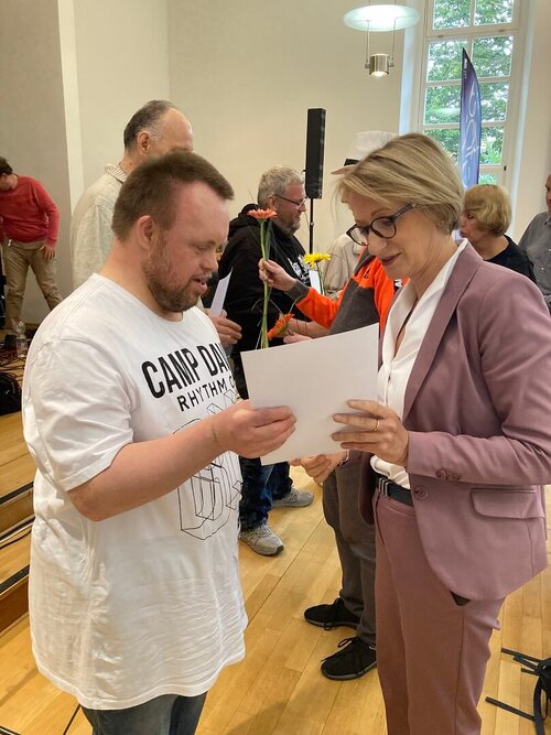 Auch die neuen Mitarbeitenden, die sich im Eingangsverfahren befinden, wurden offiziell vorgestellt und herzlich willkommen geheißen. Dieser Moment verdeutlichte die Vorfreude auf eine gemeinsame Zukunft in der Greifenwerkstatt.
