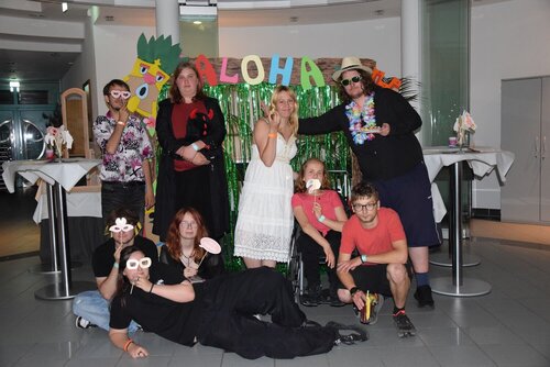 Es ist Sommer, die ersten Zeugnisse an unsere Absolvent*innen sind bereits verteilt und vor dem Betriebsurlaub stehen noch einige Prüfungen an – Zeit also für den alljährlichen Abschlussball, der die Gäste in eine tropische Oase voller Urlaubsfeeling führte. Wo sonst eher junge Menschen in Berufsbekleidung anzutreffen sind, dominierten Hawaii-Hemden, Panamahüte und Palmen das bunte Bild und verliehen dem BBW einen Hauch von Inselparadies.