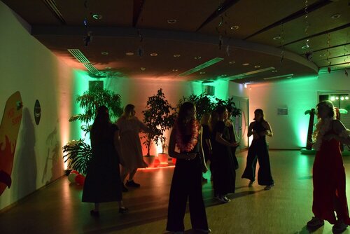 Musik und Tanz sorgten für eine tolle Stimmung und lachende Gesichter. Ein Meer aus bunten Hemden schwappte über die Tanzfläche wie eine Welle karibischer Lebensfreude. Eine Fotowand-Station mit Tiki-Flair und Hawaii-Requisiten lud zum Erinnerungsfoto ein.