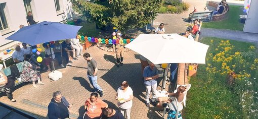Reges Treiben bestimmte die Szenerie im Innenhof und in den Werkstatträumen. Endlich mal wieder zusammenkommen und gemeinsam Zeit verbringen. Dabei wurden Alltagsthemen gewälzt, Freundschaften vertieft und es fand ein fachübergreifender Austausch zwischen den Leistungsberechtigten und Fachkräften statt. Musik und gute Laune lagen in der Luft. Viele lachende und gelöste Gesichter waren zu sehen. Die Stimmung war einfach gut. Eben eine gelungene Auszeit.