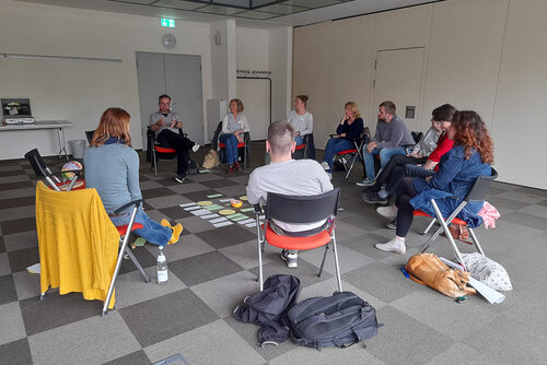 Nach einer wohl verdienten Mittagspause ging es dann am Nachmittag in die Workshoparbeit. Von Resilienz, über Nähe und Distanz und auch das Versinken in virtuelle Welten wurde den Teilnehmer:innen ein breites Spektrum geboten, die Theorie des Vormittags praktischer zu erleben.