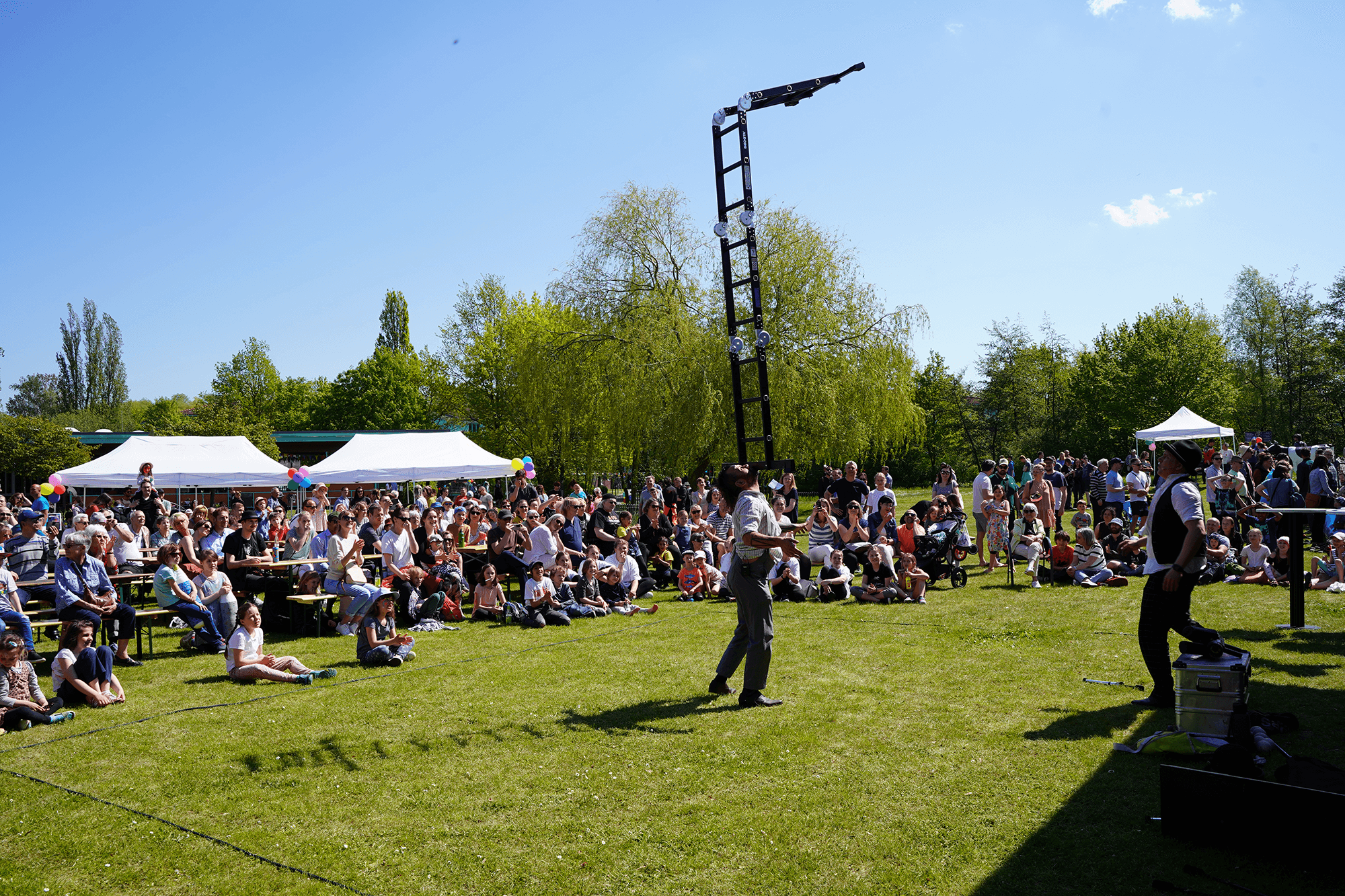 Unter dem Motto „Zusammen.Wir“ präsentierten die Jugendlichen aus den über 50 Ausbildungsberufen ihre kunsthandwerklichen Produkte, eigens kreierte kulinarische Köstlichkeiten bis hin zu kulturellen Mitmachangeboten. "Das Frühlingsfest ist für uns jedes Jahr ein besonderer Höhepunkt. Wir möchten damit auch das Bewusstsein für Inklusion und für die bedeutende Arbeit im BBW stärken", betonte Stefanie Niemeyer, Bereichsgeschäftsführerin des BBWs Greifswald. Auf der Bühne sorgten der Jugendcircus Ostsee ‘O‘ Linie, die Pomeranian Brass Band und die Mitarbeiter*innen des BBW für Abwechslung. Die kleinen Besucher*innen erfreuten sich neben der beliebten Pony Reitbahn und den Aktionen des Behindertensportverbandes, an dem Chaos Varieté mit Kaspar Groß und Arne Lifson.