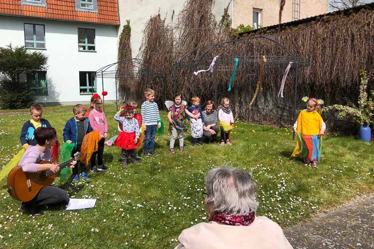 Der evangelische Kindergarten „kleine Füße von St. Bartholomai“ aus Demmin stattete uns das erste Mal seit über 2 Jahren wieder einen Besuch ab und erfreute die Bewohner mit einer Aufführung fröhlicher Frühlingslieder und Tanzeinlagen, verkleidet als Sonne und Marienkäfer.