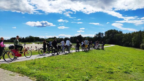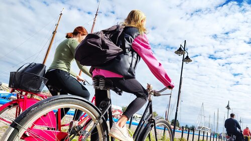 Danach heißt es traditionell rauf aufs Rad: Am ersten Freitag der Erstie-Woche machen allen Neuankömmlinge mit den Dozent:innen eine Radtour durch Greifswald – zur Altstadt mit dem Museumshafen, am Ryck entlang und nach Wieck, wo es leckere Fischbrötchen gibt.