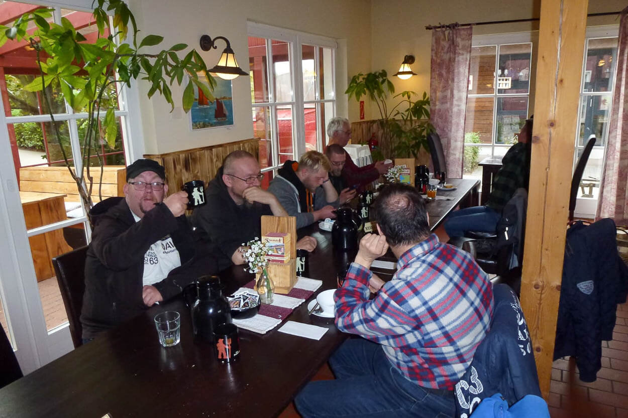 Gegen 8.00 Uhr starteten wir pünktlich (wie die Tischler) mit zwei Dienstwagen der Greifenwerkstatt unseren Tagesausflug in Richtung der Insel Rügen. Unser erstes Ziel war der Ort Rambin, wo wir auf dem Gelände der „Alten Pommernkate“ bereits im Vorfeld einen Tisch im Hofcafe reserviert hatten. Um für unser Vorhaben ausreichend gestärkt zu sein, aßen wir genüsslich vom reichhaltigen Frühstücksbuffet. Hier blieben keine Wünsche offen und so starteten wir gut gelaunt in den Tag.