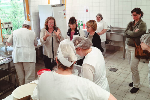 Im Fachaustausch erläuterten unsere Mitarbeiterinnen die Besonderheiten und Herausforderungen in unseren Produktionsabläufen und beantworteten bereitwillig und professionell Fragen zum gesamten Arbeitsumfeld des Arbeitsbereiches Hauswirtschaft.