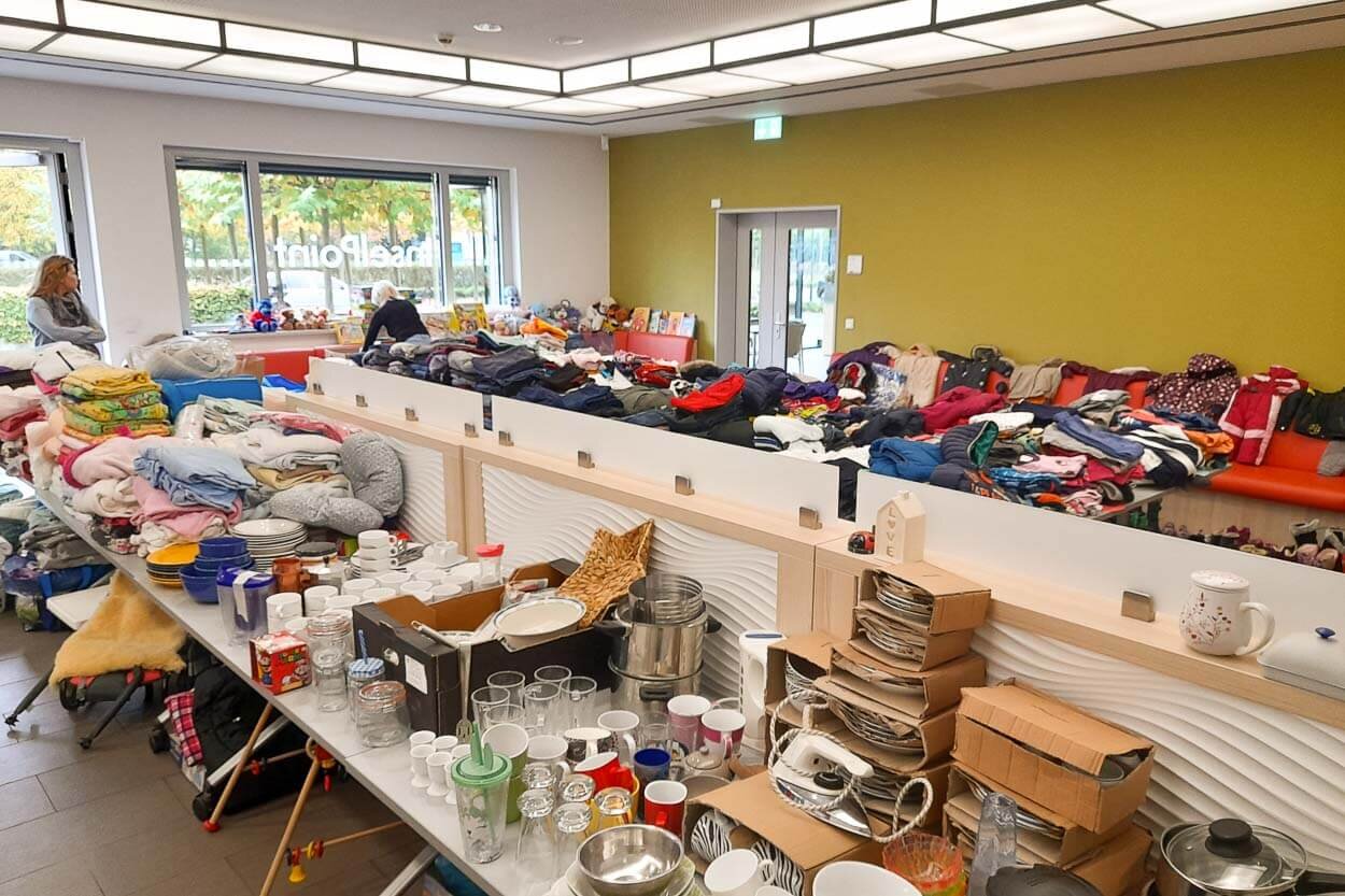 Viele Mitarbeiter:innen der Unternehmensgruppe sind dem zentralen Aufruf vor einigen Wochen gefolgt und haben nicht mehr benötigtes Hab und Gut zur Verwaltung der Norddeutschen Gesellschaft für Bildung und Soziales (NBS) gebracht, um es den Geflüchteten zu spenden.