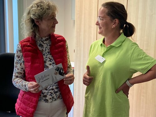 Das war es uns allemal wert, Frau Wangerow an ihrem Arbeitsplatz im Katharinenstift zu besuchen und den Übernachtungsgutschein für eine Übernachtung in einem Stadtapartment persönlich zu überreichen.