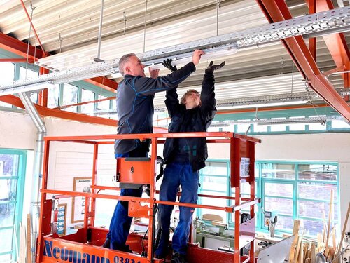 Zum anderen sorgen wir durch eine optimale Ausleuchtung der Arbeitsbereiche für einen noch besseren Arbeitsschutz. Dieser Umbau ist für unsere Auszubildenden zugleich ein ganz praktisches Training: Sie sammeln wertvolle Erfahrungen, erweitern ihre beruflichen Kompetenzen und wirken gleichzeitig aktiv an einem nachhaltigen Projekt für die Umwelt mit.