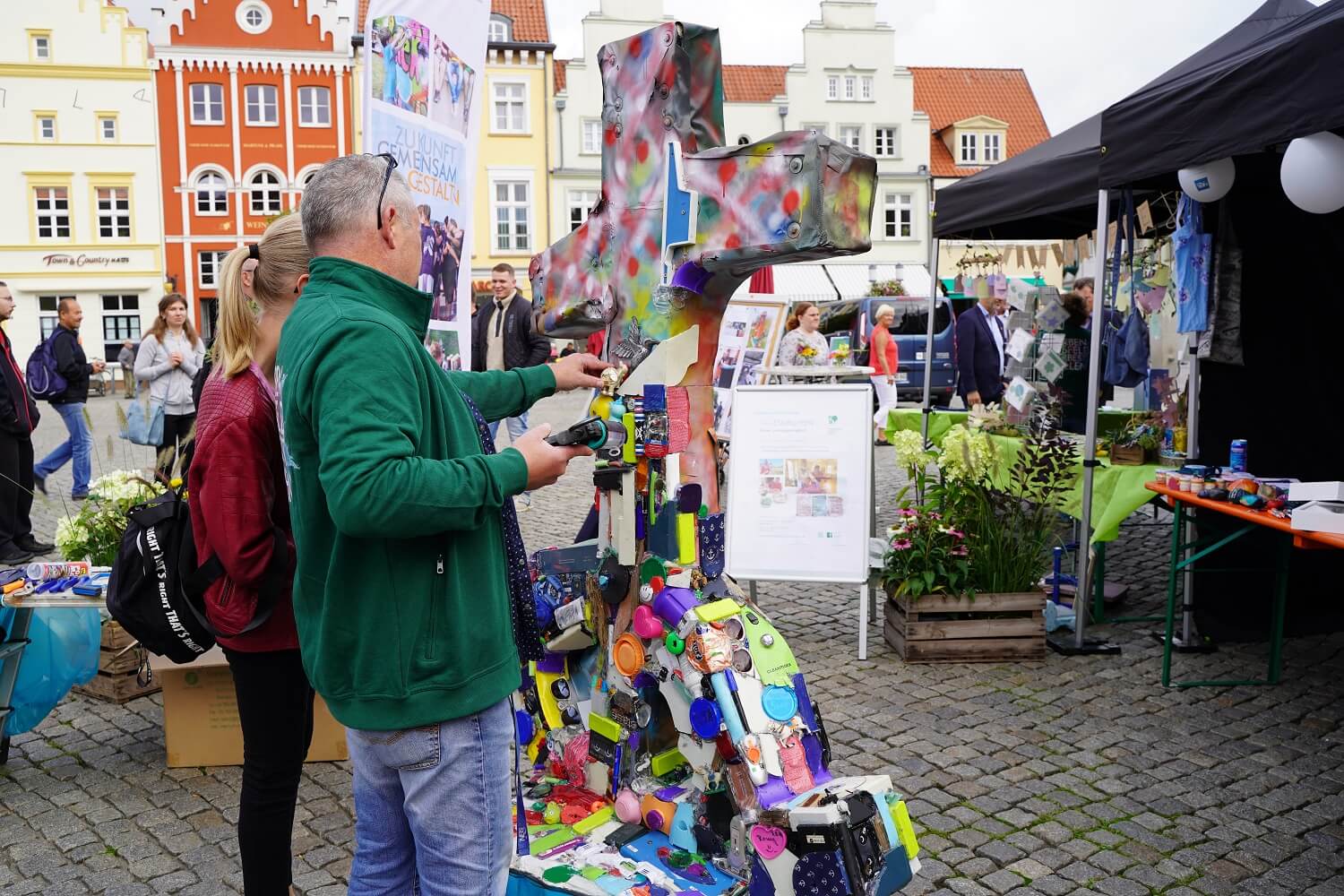 Ein weiteres Highlight der Veranstaltung war der Kita-kreARTiv-Wettbewerb. Drei Greifswalder Kitas zeigten, dass man aus vermeintlichen Abfallprodukten fantastische Upcycling-Kunstwerke entstehen lassen kann. An der Abstimmung haben sich, in der Zeit vom 02.- 14.09.22, 7535 Menschen beteiligt. Das Kunstwerk der Integrativen Montessori-Kindertagesstätte ist mit unglaublichen 4297 Stimmen als Sieger aus dem Wettbewerb hervorgegangen. Das Kunstwerk trägt den Namen Unser bunter Kita-Alltag. Denn bunt geht es zu, wenn die kleinen Künstler:innen Maila, Amalia, Lea, Theo, Joel, Theresa, Odin, Lennja, Luca, Finnegan, Joris, Tamara, Amelie, Elias, Hannah, Bruno, Oskar, Lisa, Karla, Jermaine und Isabella in die Kita kommen.