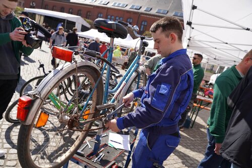 Geboten wurde den zahlreichen Besucher:innen ein buntes Angebot an Informations- und Mitmachständen, die das Thema Energie in seinen unterschiedlichen Facetten aufgriffen. So konnte man sich u.a. an der Energie-Tankstelle im Puncto Workout beraten zu lassen oder leckere Rezepte für Energie-Shots erhalten und diese auch gleich vor Ort verkosten. Der Zweirad-Stand bot einen kostenfreien Fahrrad-Check, um sicher durch`s Frühjahr zu radeln. Für Kreative gab es die Möglichkeit, ein Mobilee zu fertigen, welches durch Windenergie Musik erzeugt.