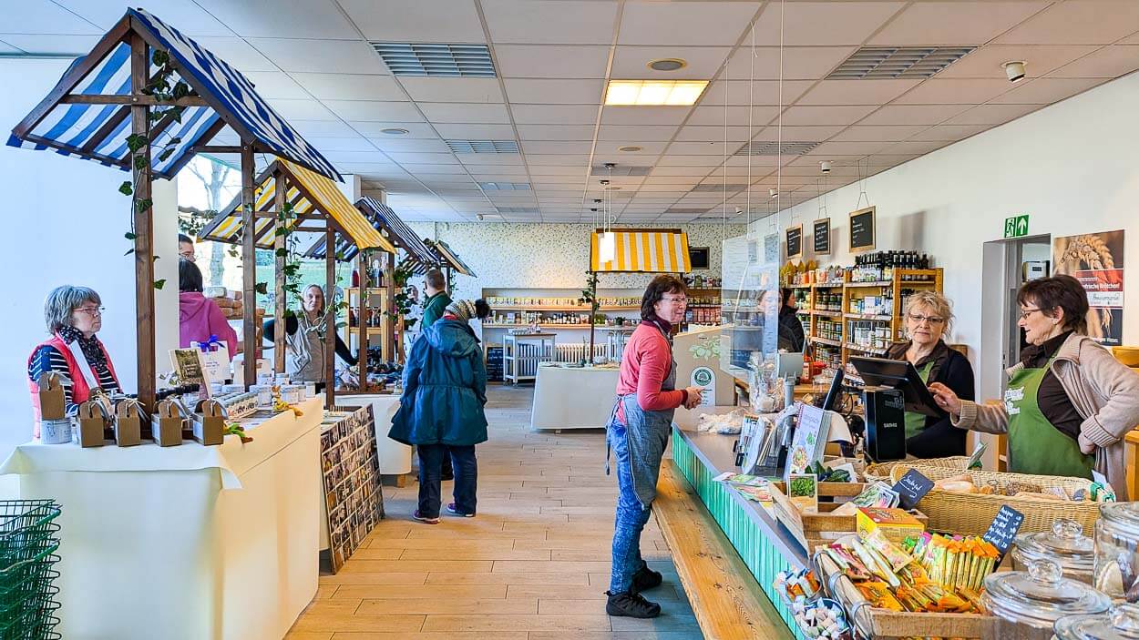 Der Naturkostladen & Bio-Imbiss Pommerngrün in der Rudolf-Petershagen-Allee in Greifswald ist bekannt für sein großes Sortiment an Bio-Lebensmitteln und seinen schmackhaften Bio-Mittagstisch. Dieses Jahr ließen wir uns etwas ganz besonderes einfallen: Einen Markt im Markt. Bunte Marktstände luden zum Stöbern und Probieren und zum Einkaufen direkt vor Ort ein. Kund:innnen konnten frische Waren direkt vom Erzeuger aus der Region erleben und kaufen.