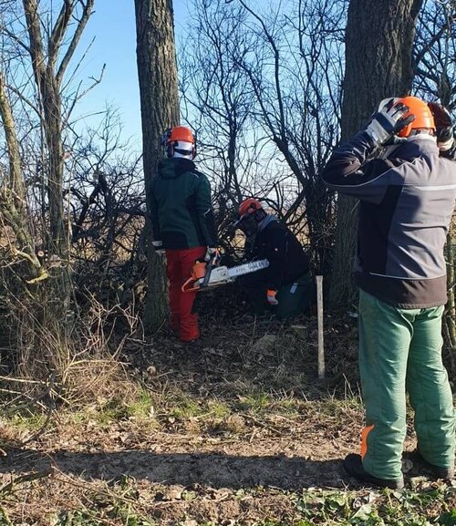 In der kalten Dezemberluft, umgeben von den hohen Bäumen des Waldes von Neu-Pansow, wagten sich zwei engagierte Teilnehmer der Greifenwerkstatt an den großen Kettensägeschein. Unter der aufmerksamen Anleitung eines erfahrenen Ingenieurs für Brandschutz und Ausbilders der Feuerwehr wurde gemeinsam mit anderen Teilnehmenden das Geheimnis des fachgerechten Baumfällens enthüllt.