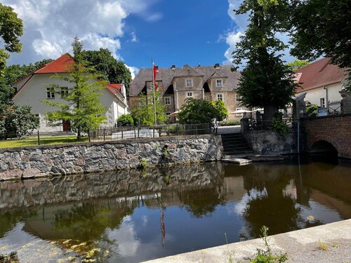 Anschließend setzten wir unsere Fahrt nach Mellenthin fort, wo wir das im Jahr 1575 erbaute Wasserschloss besichtigten. Der imposante Aufbau dieser Anlage beeindruckte uns sehr. Zum Abschluss genossen wir ein köstliches Mahl im Schloss-Restaurant, bevor es über die Zecheriner Brücke zurück nach Greifswald ging.