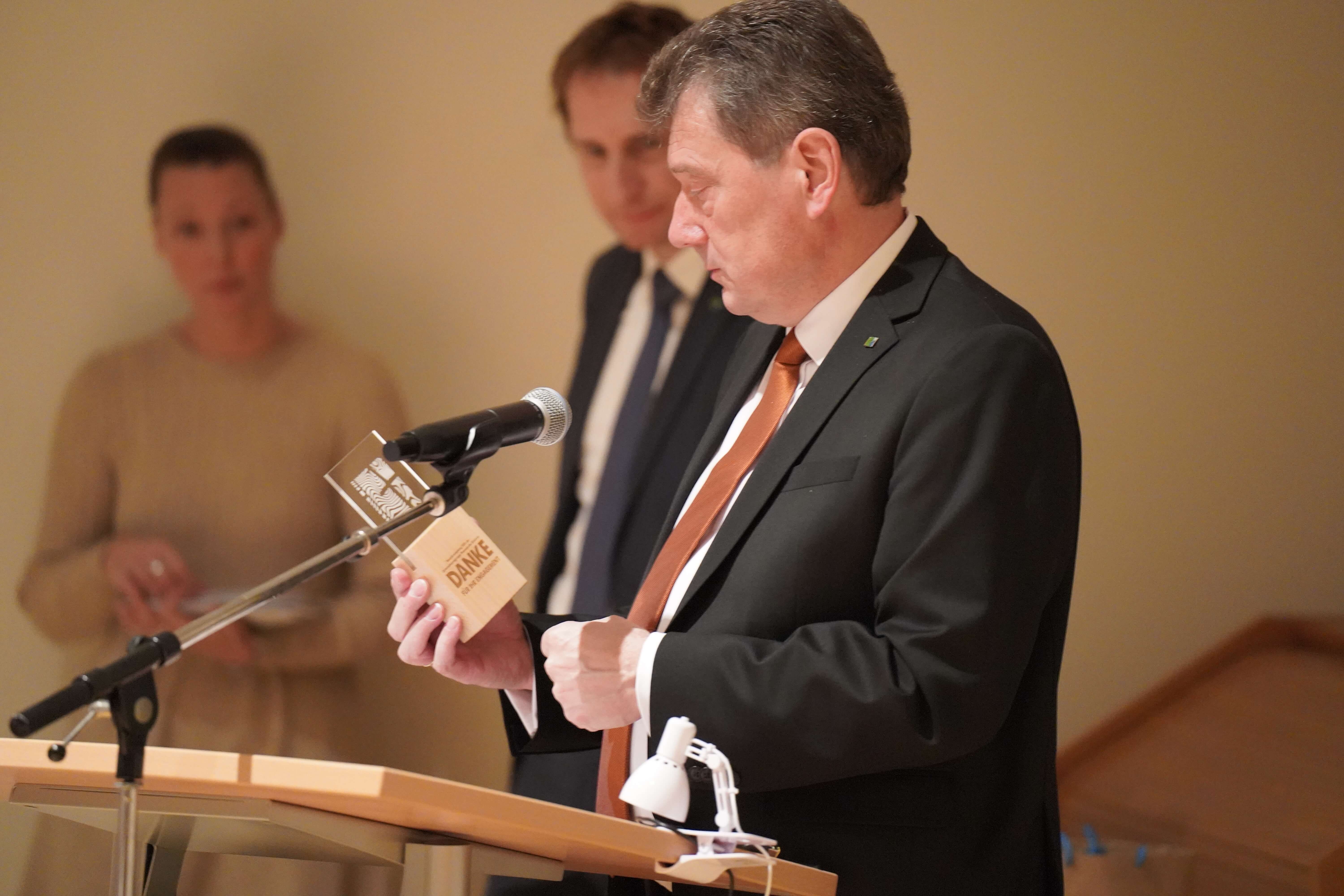 Dank gilt auch dem Vorsitzenden des Kuratoriums, Gerd Panknin, der in seiner Ansprache der UGPD symbolisch einen Schlüssel übergab, um neue Türe öffnen zu können. Als Zeichen der Verbundenheit und des guten Miteinanders, als Dank des gegenseitigen Vertrauens.