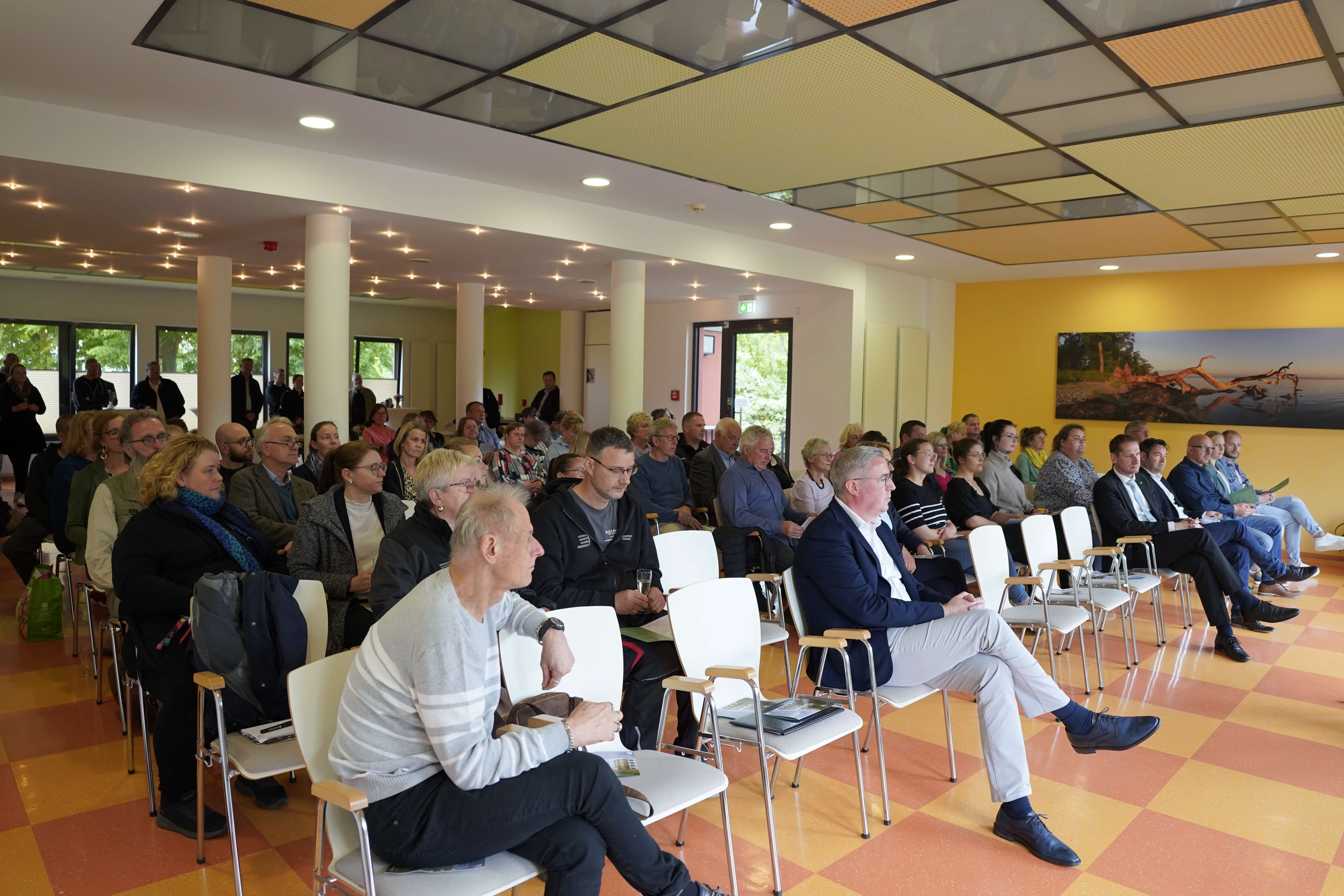 Vom Konzept überzeugen konnten sich die künftigen Bewohner*innen, Mitarbeitenden sowie alle Gäste bei den während der Einweihungsfeier angebotenen Führungen. Rein praktisch wurden die Räumlichkeiten dabei auch durch eine Bewohnerin des benachbarten Katharinenstifts getestet, die auf den Rollstuhl angewiesen ist. Mühelos konnte sie sich im Haus bewegen. Mit dem Fahrstuhl von Ebene zu Ebene und dank schwellenloser Übergänge und ausreichend breit geschnittener Türen von Raum zu Raum.