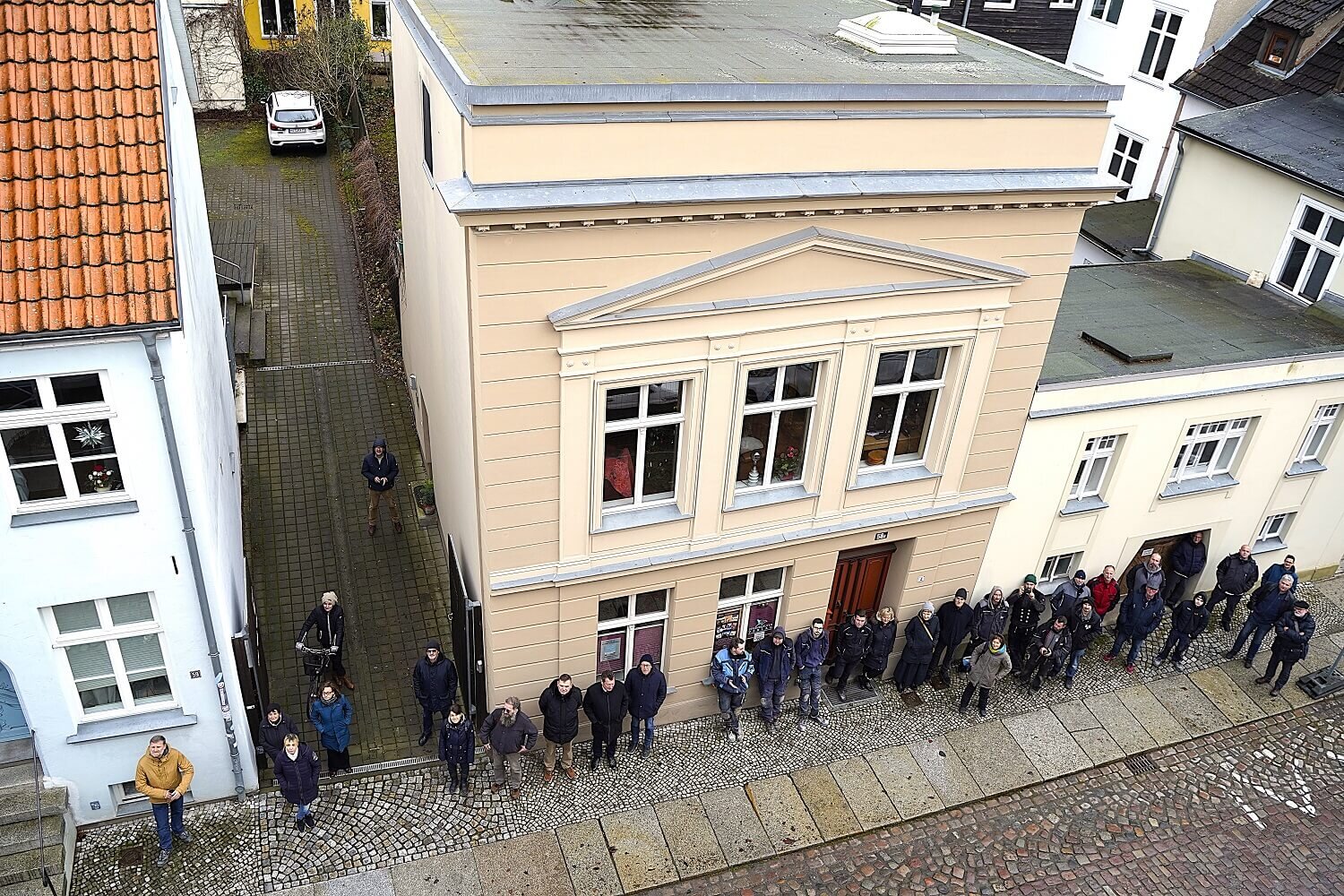 In der Stralsunder Mönchstraße 4 errichtet der Pommersche Diakonieverein ein Mehrfamilienhaus mit sieben Mietwohnungen und schließt damit eine seit langem bestehende Baulücke. Die Bauarbeiten am Neubau des Wohnhauses sind in den letzten Monaten soweit vorangeschritten, dass noch kurz vor dem Weihnachtsfest, am 18. Dezember, Richtfest gefeiert werden konnte.