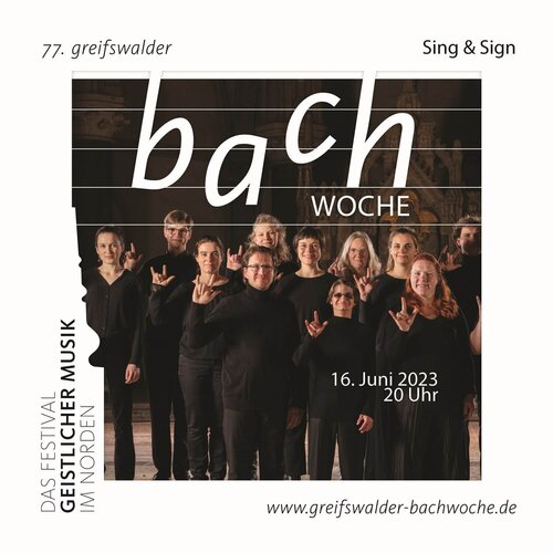 Am 16.06.23 | 20:00 Uhr führt das Leipziger Ensemble Sing&Sign Musikstücke von Bach und Schütz im Dom St. Nikolai auf. Die Sänger:innen singen und agieren dazu gleichzeitig in Gebärdensprache. Das Konzert richtet sich damit sowohl an Hörende als auch an Menschen mit einer Beeinträchtigung des Hörvermögens. Ein mit den Augen hörendes Konzerterlebnis, welches Sie sich nicht entgehen lassen sollten.