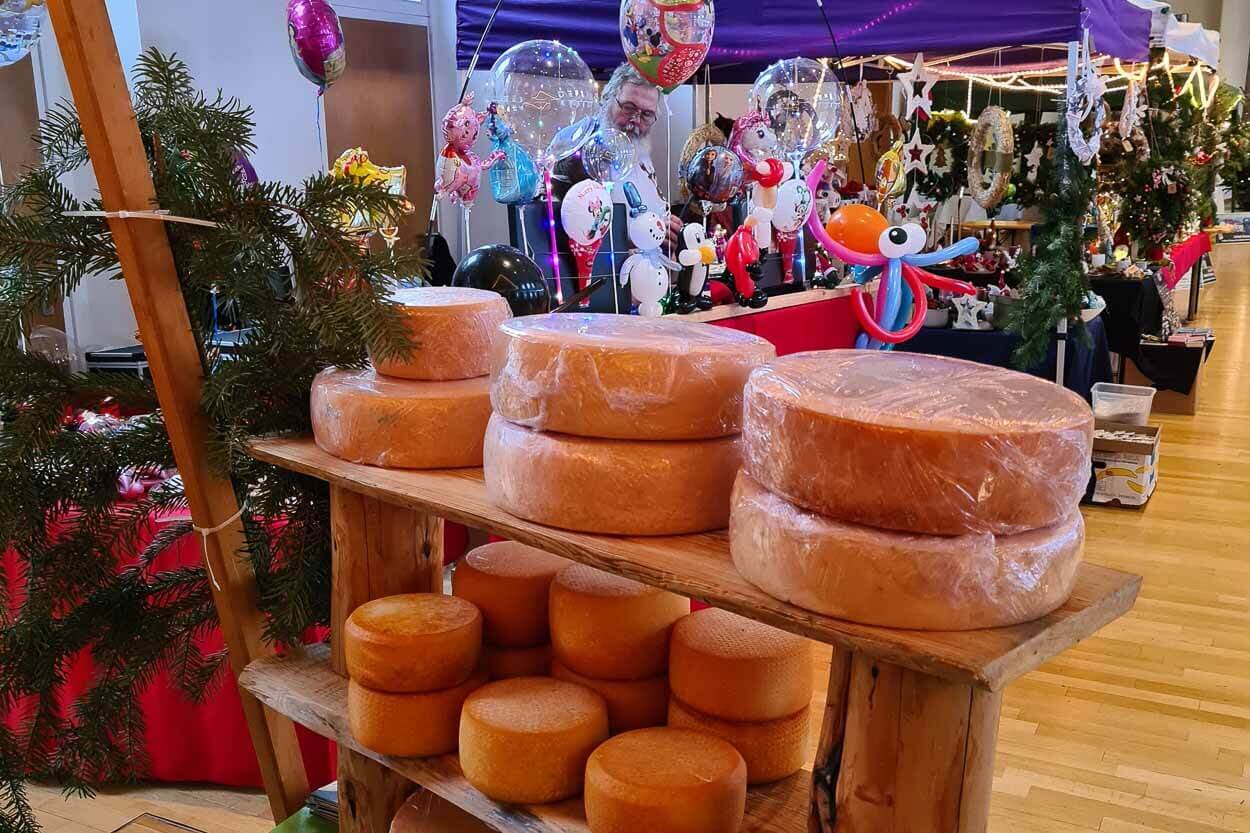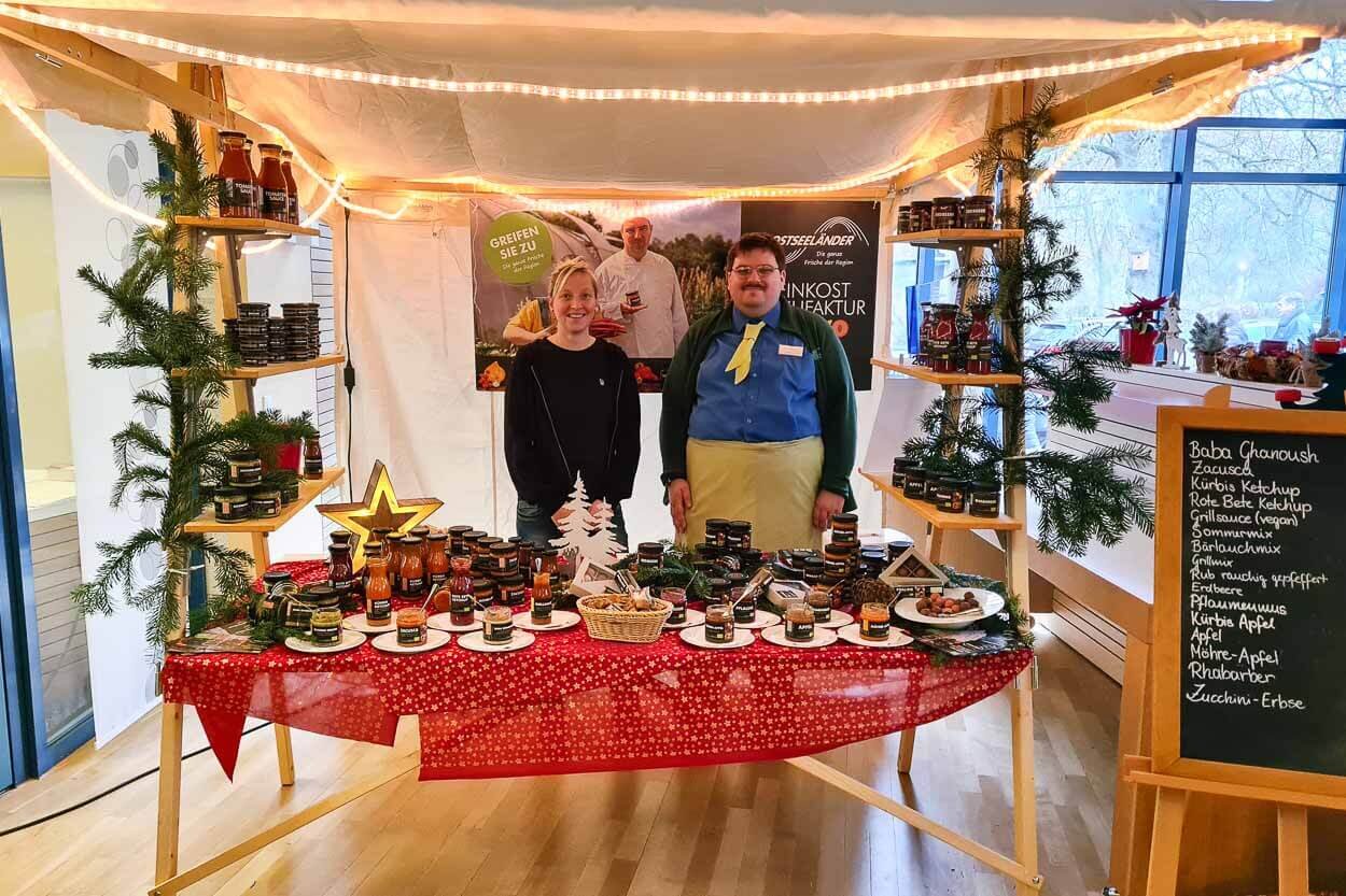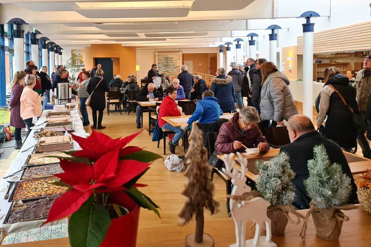 Hunderte Besucher:innen sorgten dafür, dass bei allen Beteiligten keine Langeweile aufkam. Neben dem Sturm auf das Kuchenbuffet und die leckeren Imbissangebote rund um die Gulaschkanone gab es großes Gedränge im „Marktplatz Wichernsaal“. Ob Ostseeländer Käse, die Spezialitäten der Feinkostmanufaktur, liebevoll gestaltete Weihnachtsdekorationen und Kunstgewerbe, Schwippbögen, Keramik und vieles andere mehr - alle Ausstellenden konnten mit ihrem Angebot überzeugen und fanden zahlreiche Käufer:innen.