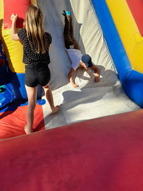 Darüber hinaus gab es eine Hüpfburg, die zum Herumtoben einlud. Und natürlich durfte der Zuckerwatte-Stand nicht fehlen, der die Münder, Hände und einiges mehr, wahlweise blau oder rosa färbte.