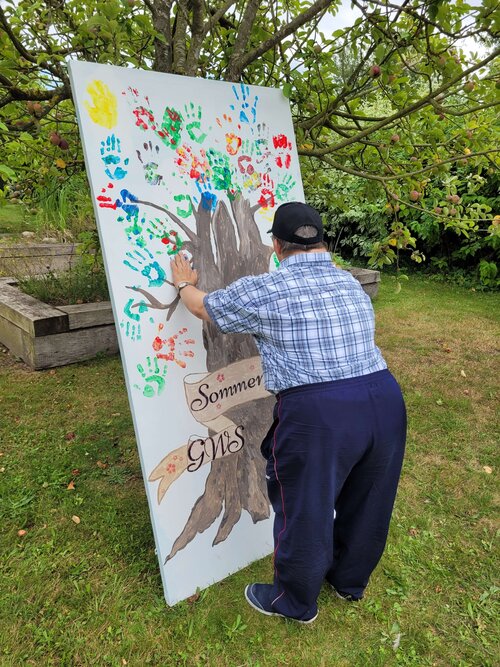 Am Sommerfestbaum konnten die Teilnehmenden selbst aktiv werden und ihren Handabdruck als Blatt verewigen. Tolle Preise konnten dank großzügiger Zuwendungen unserer Sponsoren am eigens gebauten Glücksrad verlost und gewonnen werden. Ein weiteres Highlight stellte OT Aktiv Greifswald zur Verfügung. Die Teilnehmer*innen konnten mit verschiedenen Rollstühlen über das Gelände fahren.