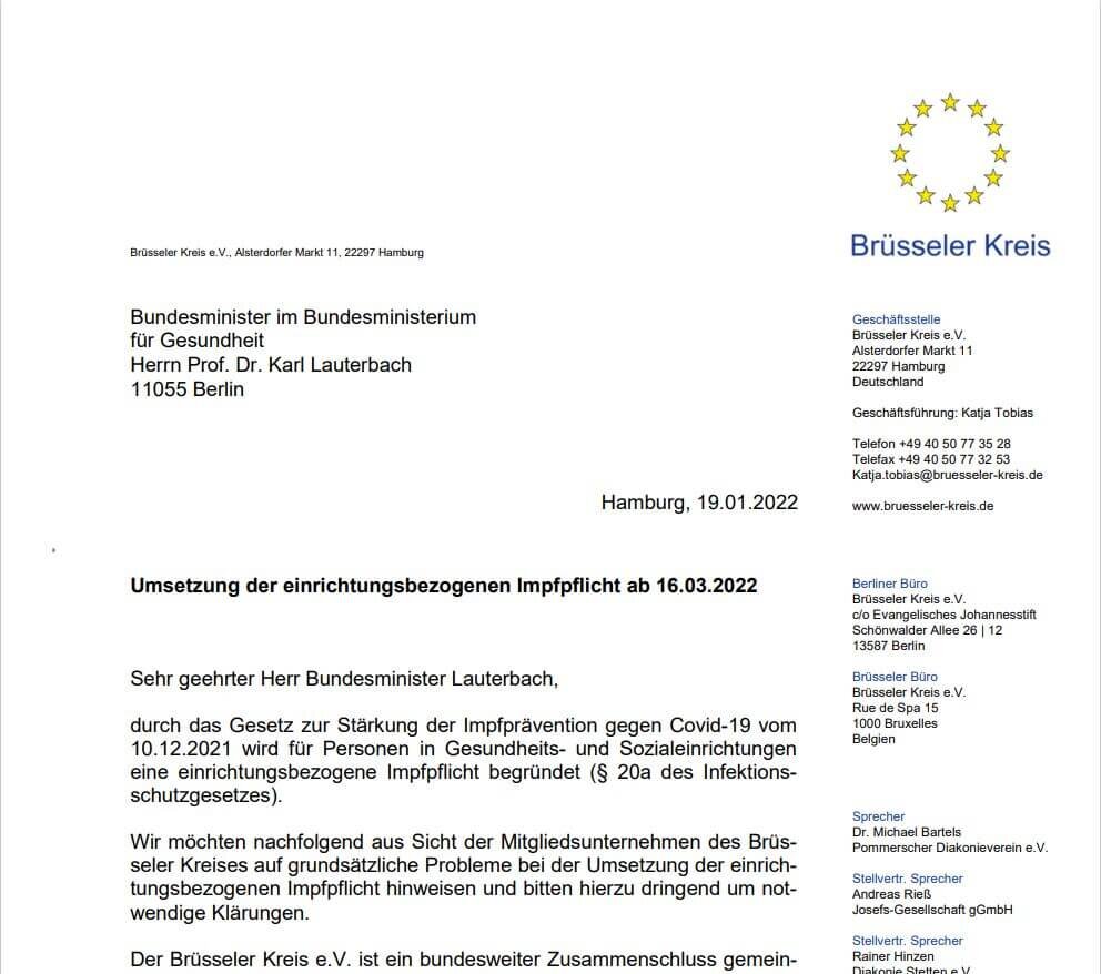 Stellungnahme des Brüsseler Kreises zur einrichtungsbezogenen Impfpflicht