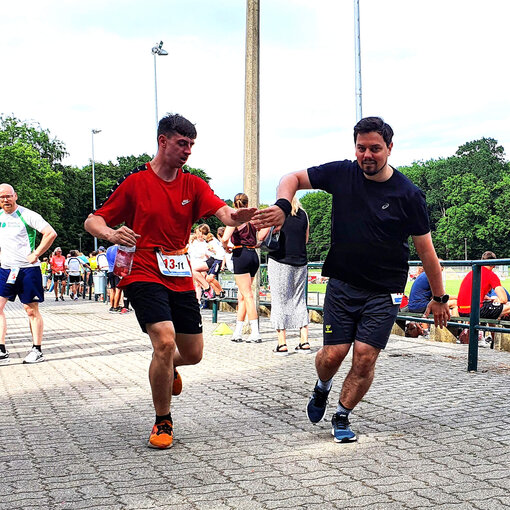 Die Kollegen aus dem Wohnbereich stellten sich der Herausforderung „laufend zu helfen.“ Gemeinsam liefen sie in 3:32:43 St. insgesamt 42 km und erstritten unter vollem Einsatz einen hervorragenden 7. Platz von 15 angetretenen Teams. Der Spenden-Team-Marathon, gemeinsam organisiert von der Abteilung Leichtathletik inklusiv der HSG Universität Greifswald und der Greifswalder Sportfirma Sport-Bewegung-Gesundheit ist mittlerweile zu einer festen Größe im Greifswalder Sportkalender geworden. Durchgeschwitzt, aber mit einem Lächeln im Gesicht, kamen die Sportler*innen am Ziel an. "Die Strecke durchzuhalten war wirklich schwer. Aber mit dem Gedanken, dass ich mit meinem Lauf etwas für einen guten Zweck tue, lief es sich gleich viel leichter!", unterstreicht Michelle Baum, 2. Lehrjahr Lagerfachhelferin.