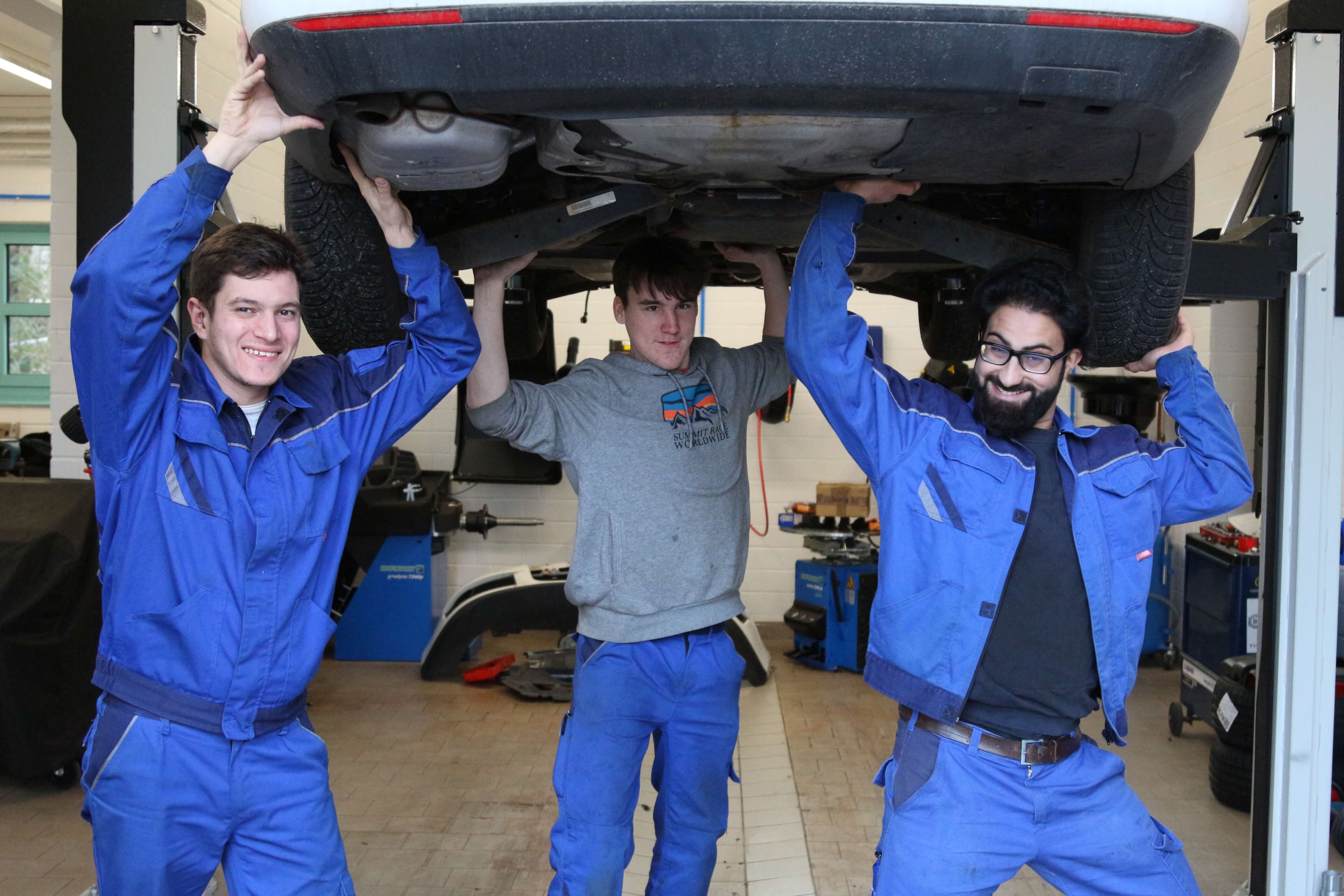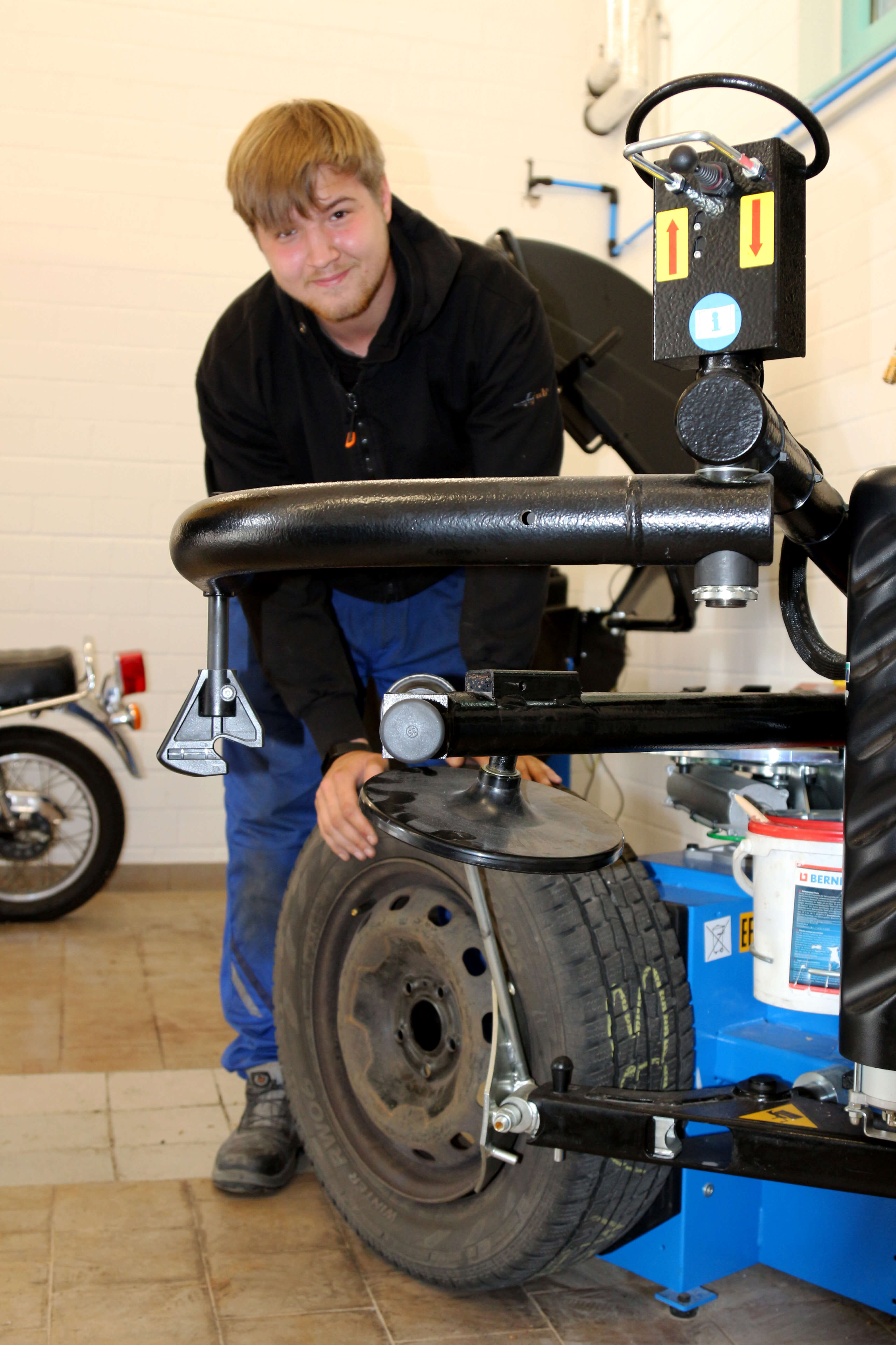 Die neuen Räumlichkeiten verfügen derzeit über ein kleines Reifenlager, eine Hebebühne, einer Montagemaschine für Reifen, sowie einer Auswuchtmaschine. Weiterhin befindet sich in der Halle ein Kraftfahrzeug zur praktischen Unterweisung von Lehrinhalten. „In unserer KFZ-Halle erlernen unsere Jugendlichen erste Schritte bei der Wartung von Kraftfahrzeugen. Zum Beispiel können derzeit eingebaute Fehler in der Fahrzeugelektronik mit Hilfe eines modernen Diagnosegerätes festgestellt und anschließend behoben werden,“ unterstreicht Thorsten Heldt, Ausbilder im KFZ-Bereich.