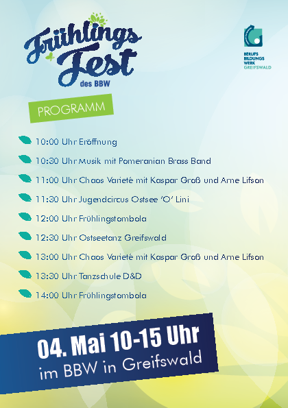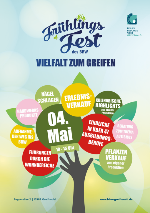 Das Frühlingsfest verspricht einen Tag voller Freude, Unterhaltung und Einblicke in die vielfältigen Talente und Fertigkeiten unserer Teilnehmer*innen in der Pappelallee 2. Wir freuen uns darauf, gemeinsam die Vielfalt erlebbar zu machen.