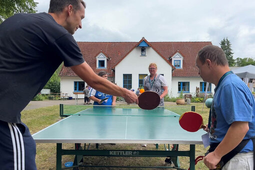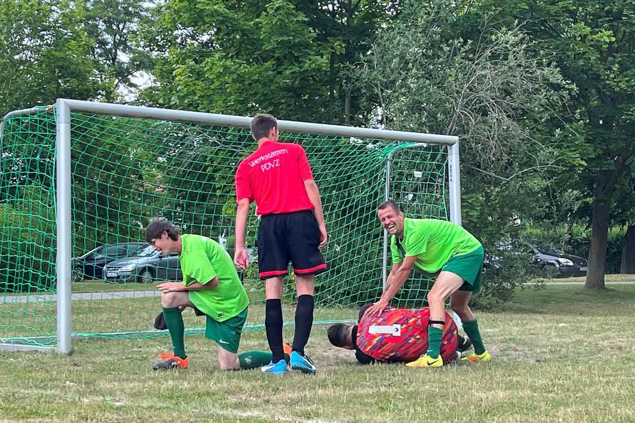 "Und du stehst im Tor?", fragte jemand. "Nee, ich schieße die Tore!", antwortete Marko Müller-Hähnel mit einem breiten Grinsen. Ein Fußballturnier mit 4 Mannschaften bildete den krönenden Abschluss, bei dem jede Mannschaft einmal gegeneinander antrat. Die Spieler:innen waren voller Energie und übertrafen sich selbst. Am Ende sicherte sich das weiße Team der Greifenwerkstatt den ersten Platz dank der besseren Tordifferenz ganz knapp vor dem punktgleich roten Team, bestehend aus Fachkräften. Auf Platz 3 lag am Ende das grüne Team der Greifenwerkstatt und wurde gefolgt vom gelben Team der Züssower Wohnstätten. Alle wuchsen über sich hinaus und zeigten unter anfeuernden Kommentaren und Jubelschreien ihre ganze Spielfreude.