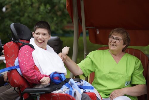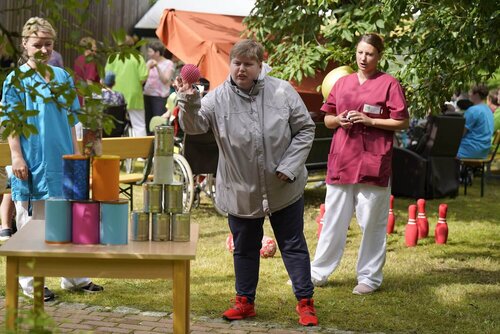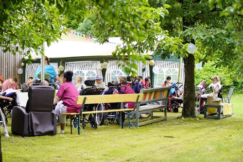 Hast du die Musik gefühlt? Die fröhlich aufgeregte Stimmung, die draußen im Garten am Haus an der Trebel an diesem Sommertag sich wie ein flatterndes Band im Wind durch die Bewohner*innen, Mitarbeitende und Gäste zog? Es war Sommerfest. Ein Fest, dass viele der Bewohner*innen aufgrund ihrer Beeinträchtigungen in erster Linie über die Musik wahrnahmen. Die Mitarbeitenden unterstützten beim (Rollstuhl)Tanzen und Schunkeln. Begleiteten und motivierten bei den Spielstationen, wie Dosenwerfen oder Kegeln und berieten bei der Auswahl von Glitzertattoo-Motiven. Highlight waren jedoch die Rikscha-Fahrten. Schon ein wenig aufregend, so mit Helm in das Gefährt einzusteigen, dass sich plötzlich auch noch in Bewegung setzt und Mobilität neu definiert. Die Freude hierüber war den Bewohner*innen anzumerken. Jeder*m auf die ganz eigene Art und Möglichkeit sich mitzuteilen - durch Gestik, Mimik und Laute.