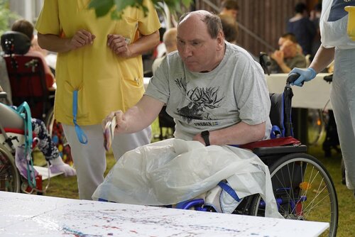 Daneben gab es in diesem Jahr noch ein ganz besonderes Mitmachangebot - die Gestaltung einer dreiteiligen Leinwand. Jede*r die*der wollte durfte den Pinsel schwingen und Farbe aufbringen. So entstand ein inklusives Kunstwerk, dass künftig im Haus an das diesjährige Sommerfest erinnern wird. Erinnern an die Musik, die fröhlich aufgeregte Stimmung und vor allem an all die Mitarbeitenden die mit viel Engagement dieses Fest möglich gemacht haben und mit ihrer ansteckenden positiven Grundstimmung jeden Tag für die Bewohner*innen des Hauses an der Trebel da sind. Danke.