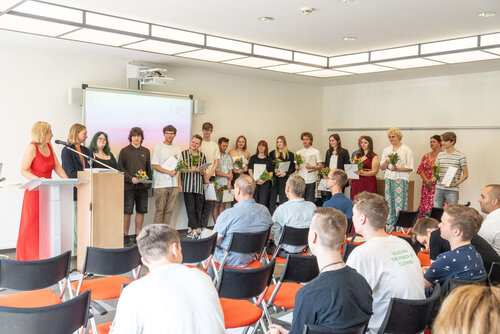Nach dem offiziellen Teil der Veranstaltung konnten sich die Absolvent*innen in lockerer Runde über ihre zukünftigen Pläne, wie den Einstieg in das Berufsleben austauschen, oder die letzten Ausbildungsjahre mit kleinen Anekdoten Revue passieren lassen.