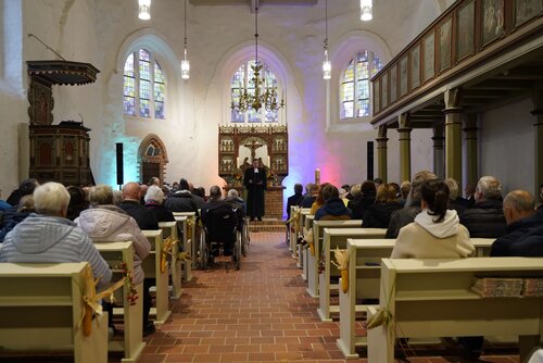Die Zwölfapostelkirche Züssow, in welcher heute die Gemeinde zusammengekommen ist, war der Ausgangspunkt der diakonischen Arbeit. In ihr wurden vor 80 Jahren Körbe der Barmherzigkeit aufgestellt, in welche die Menschen vor Ort Spenden, die zum Leben gebraucht wurden, für die ankommenden mittellosen Menschen hineinlegten. Stück für Stück entstand so eine Heimat für Heimatlose.