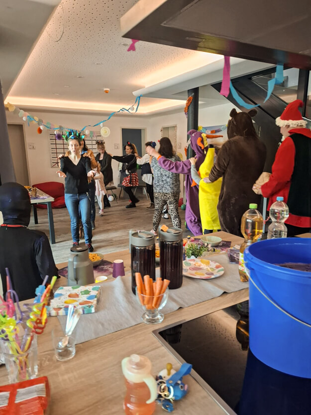 Gemeinsam wurden verschiedene Spiele gespielt, viel gelacht und ausgelassen getanzt. Die fröhliche Stimmung war im ganzen Haus spürbar und sowohl die Kinder als auch die Eltern hatten sichtlich Spaß. Besonders schön war es zu sehen, wie alle gemeinsam mitgemacht und den Tag miteinander genossen haben.