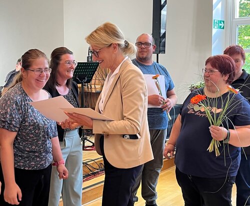 Manche sind erst seit kurzem dabei, andere schon seit Jahrzehnten. Gemeinsam wurde gefeiert, erinnert, gelacht und auch die ein oder andere Träne verdrückt. Die Fachbereichsleiterin, Frau Natschke, erzählte von den Anfängen vor zehn Jahren. Fachkräfte berichteten, was in dieser Zeit an Entwicklung möglich wurde. Aus anfänglicher Unsicherheit – „Wie wird das wohl werden?“ – ist mit der Zeit ein selbstbewusstes „Lassen Sie uns mal machen, das passt schon!“ geworden. Geschichten wie die von Herrn Wessler aus der Käserei zeigen eindrücklich, wie viel möglich ist, wenn man die richtige Unterstützung hat.