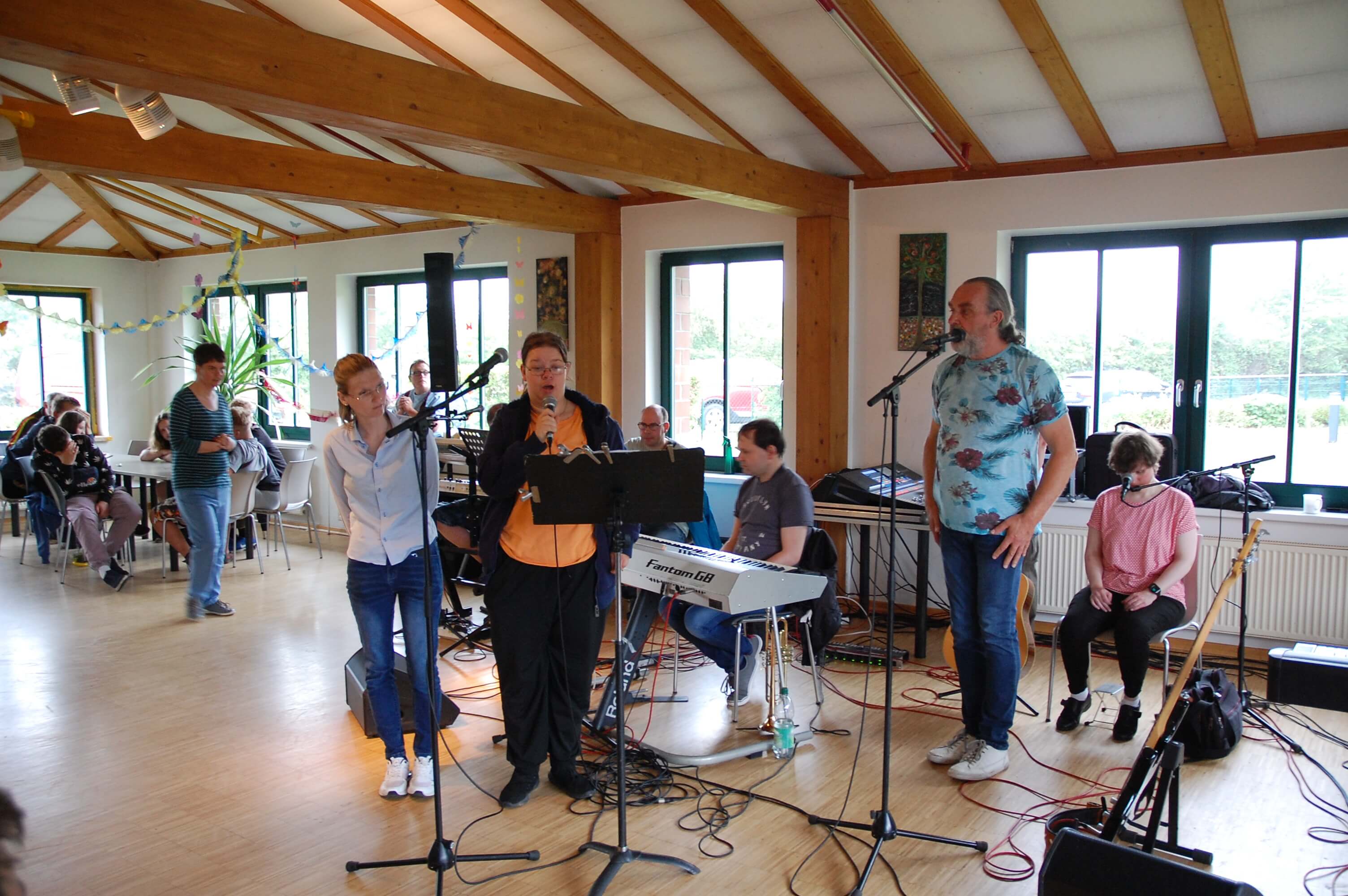 Trotz launischen Wetters und dichter Regenwolken war die Stimmung bei der diesjährigen Sommerandacht in der Greifenwerkstatt am Helmshäger Berg durchweg sonnig – zumindest in den Herzen. Unter dem Motto „Besser zusammen als allein“ kamen rund 150 Menschen zusammen, darunter auch Gäste von anderen Standorten, um gemeinsam zu feiern, zu singen, zu lachen und ein besonderes Miteinander zu erleben.